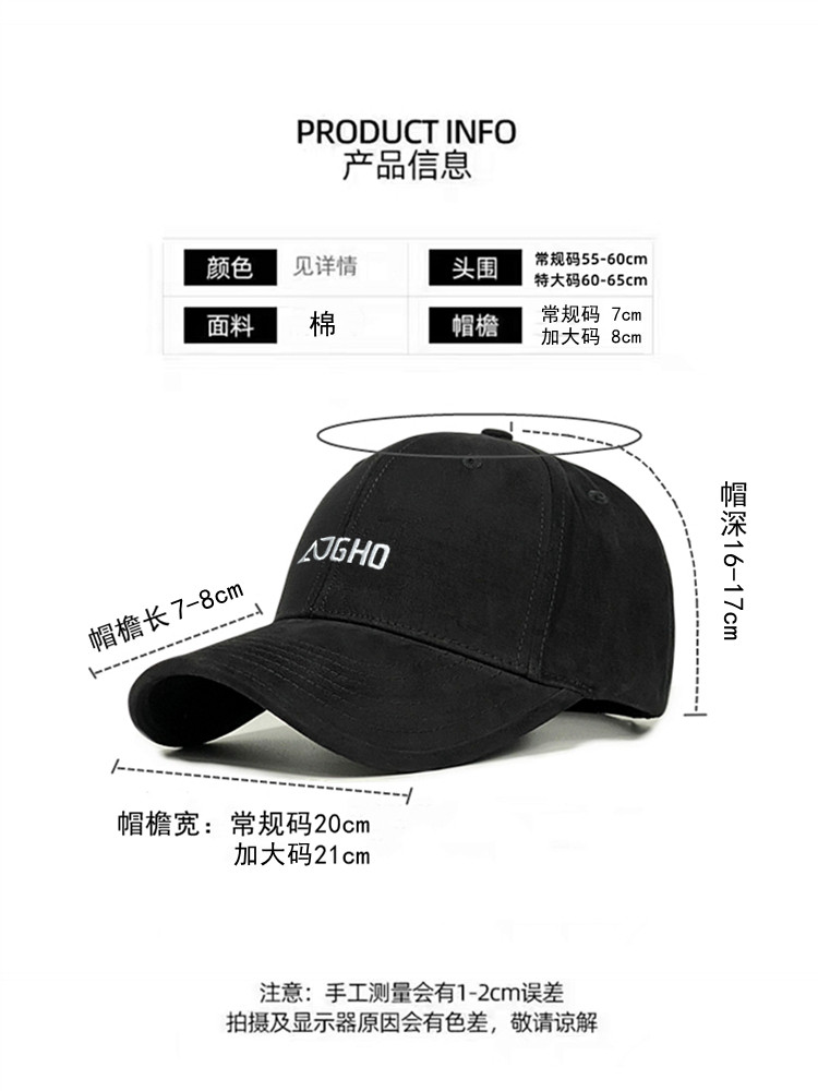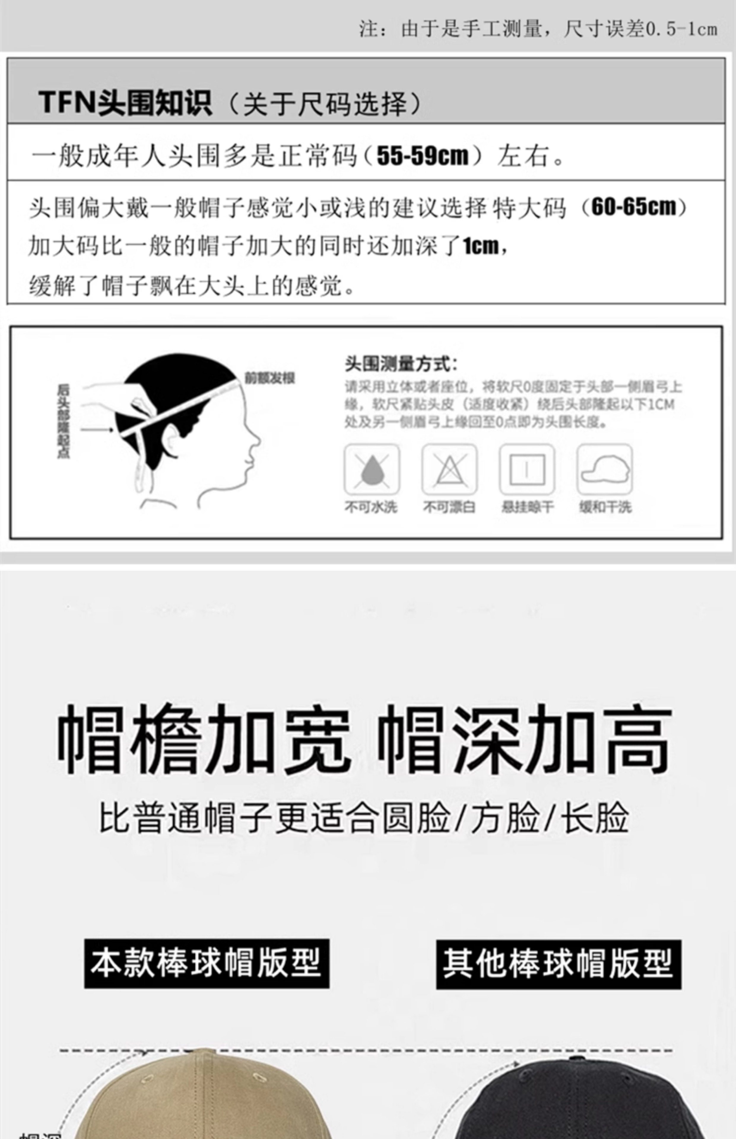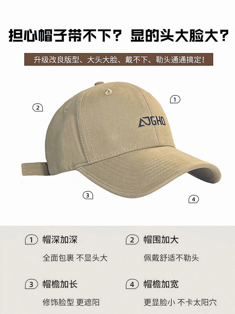 Big head circumference hat, men’s enlarged and deepened hardtop duckbill hat, men’s spring and autumn baseball hat, women’s wide brim, small face