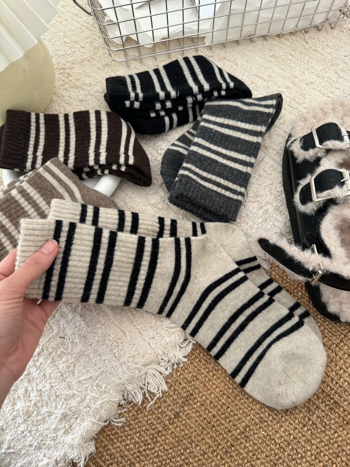 | color | Double striped mid-calf socks |
