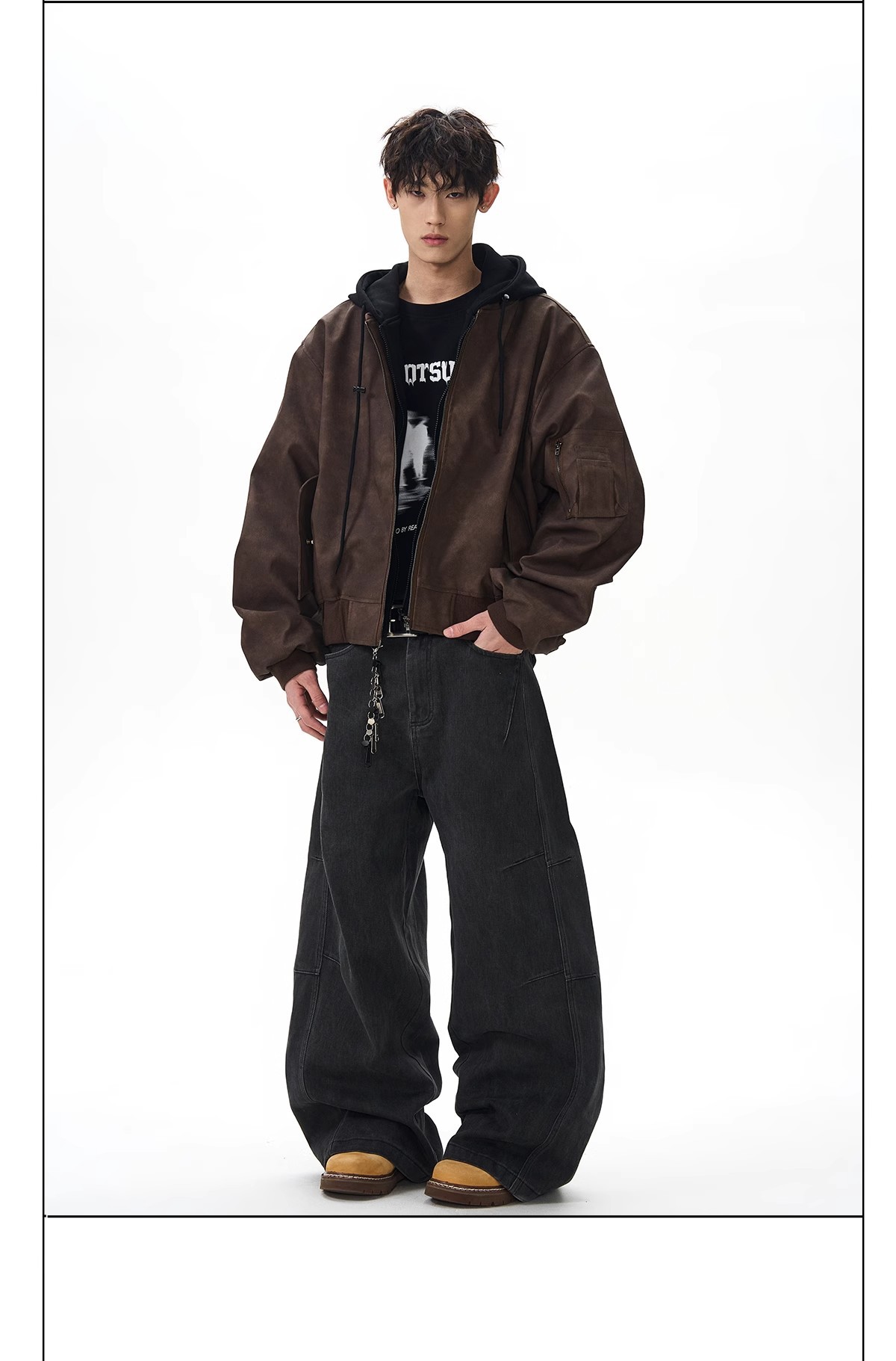 Cross-Border 2025 American Fake Two-Piece Flight Suit Jacket for Men 2025 Spring and Autum Loose Hooded Silhouette Pu Leather Jacket