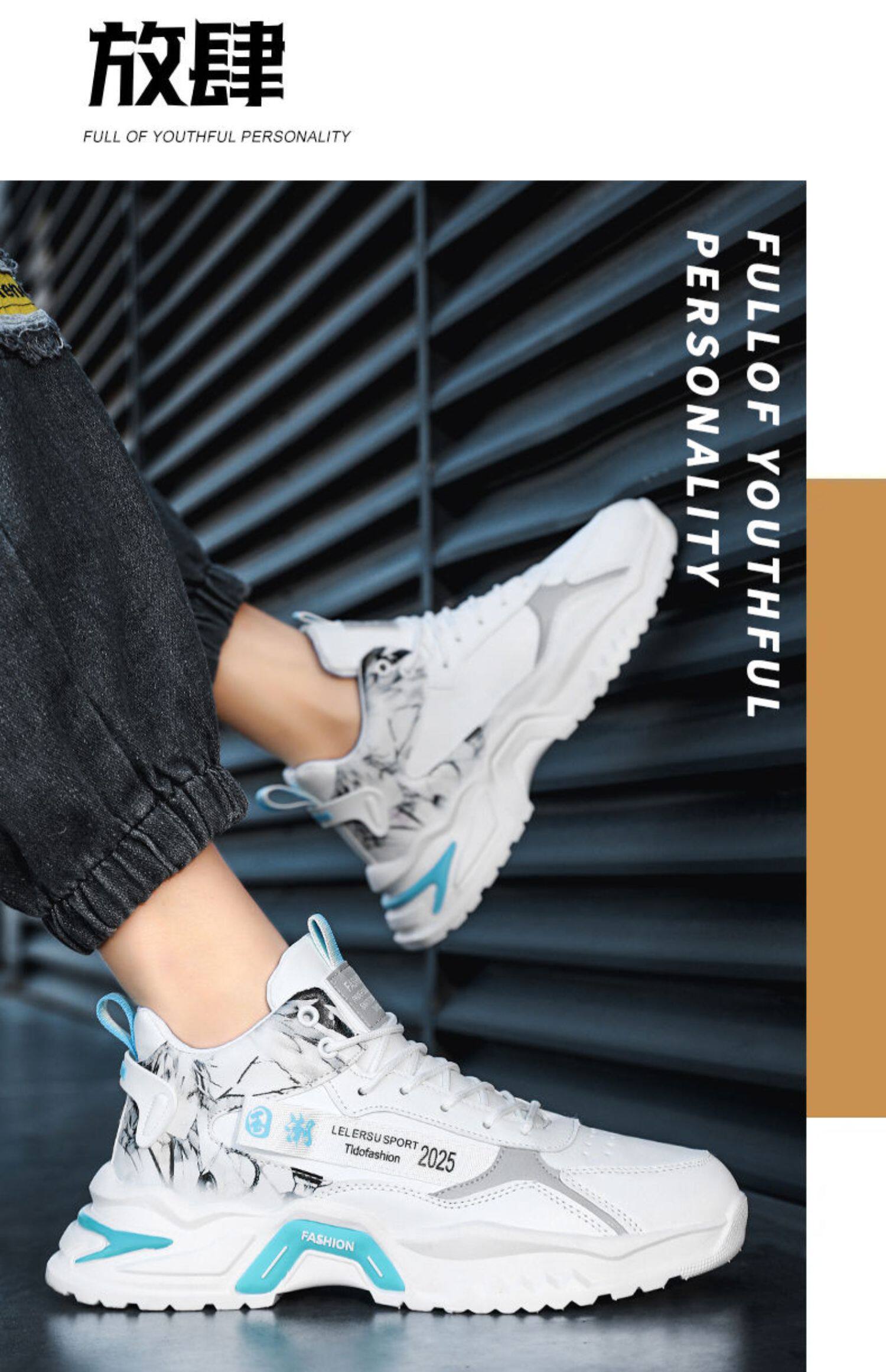 Summer men’s shoes 2025 new high top dad shoes youth trend white running casual shoes versatile sports shoes