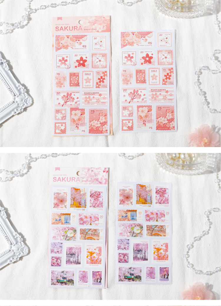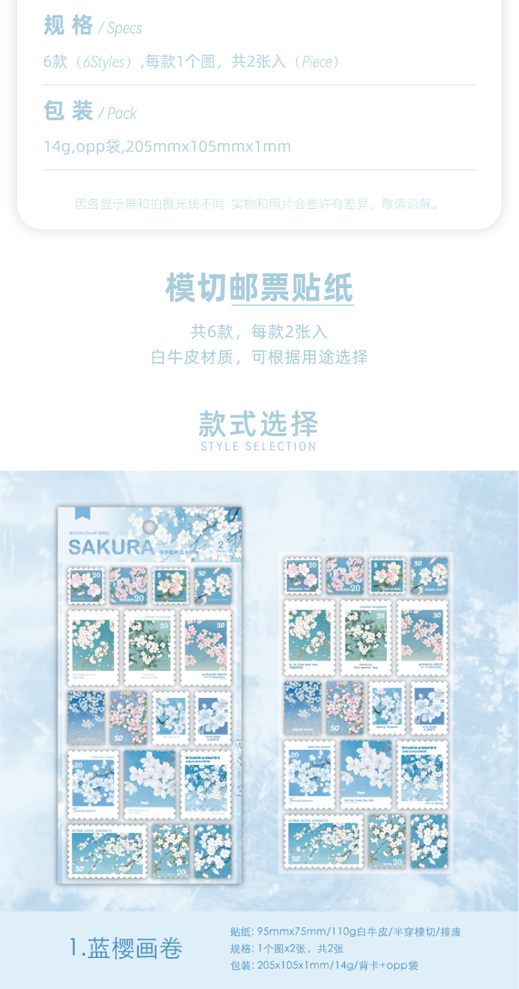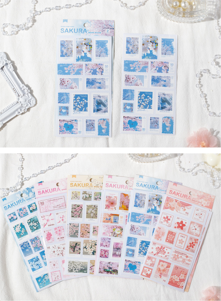 color | 1. blue sakura scroll, 2. elegant letterhead, 3. pink and ink line drawing, 4. sunset warm cherry blossoms, 5.spring street scene, 6. sunny white cherry blossoms |