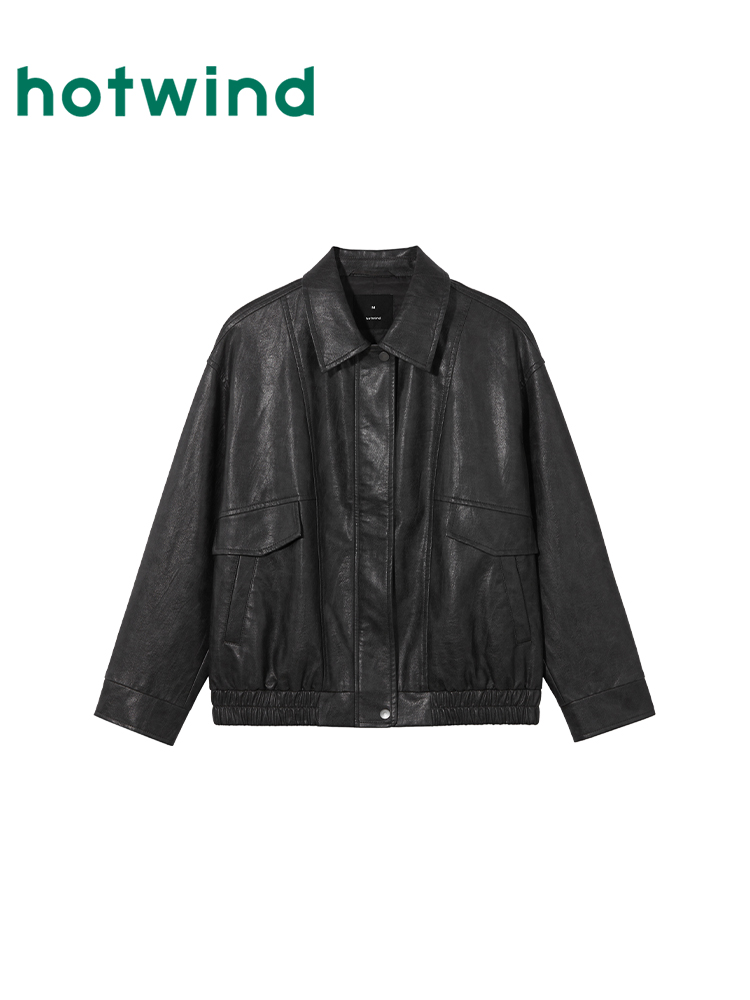 Hot Wind 2025 Autumn New Women’s Two tone Leather Jacket