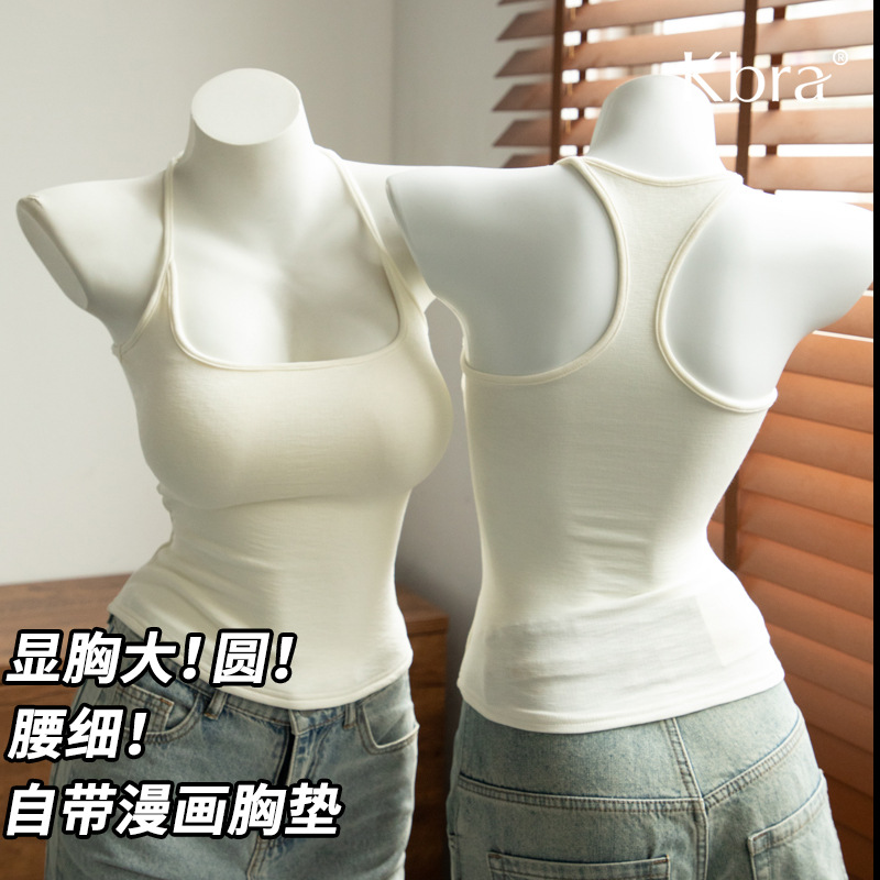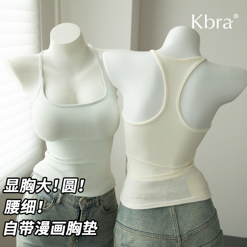 Kbra Racer-Neck Halterneck with Breast Pads, Camisole for Women with Small Breasts, Showing Big Waist and Slimming Look Summer Inner Wear and Outer We