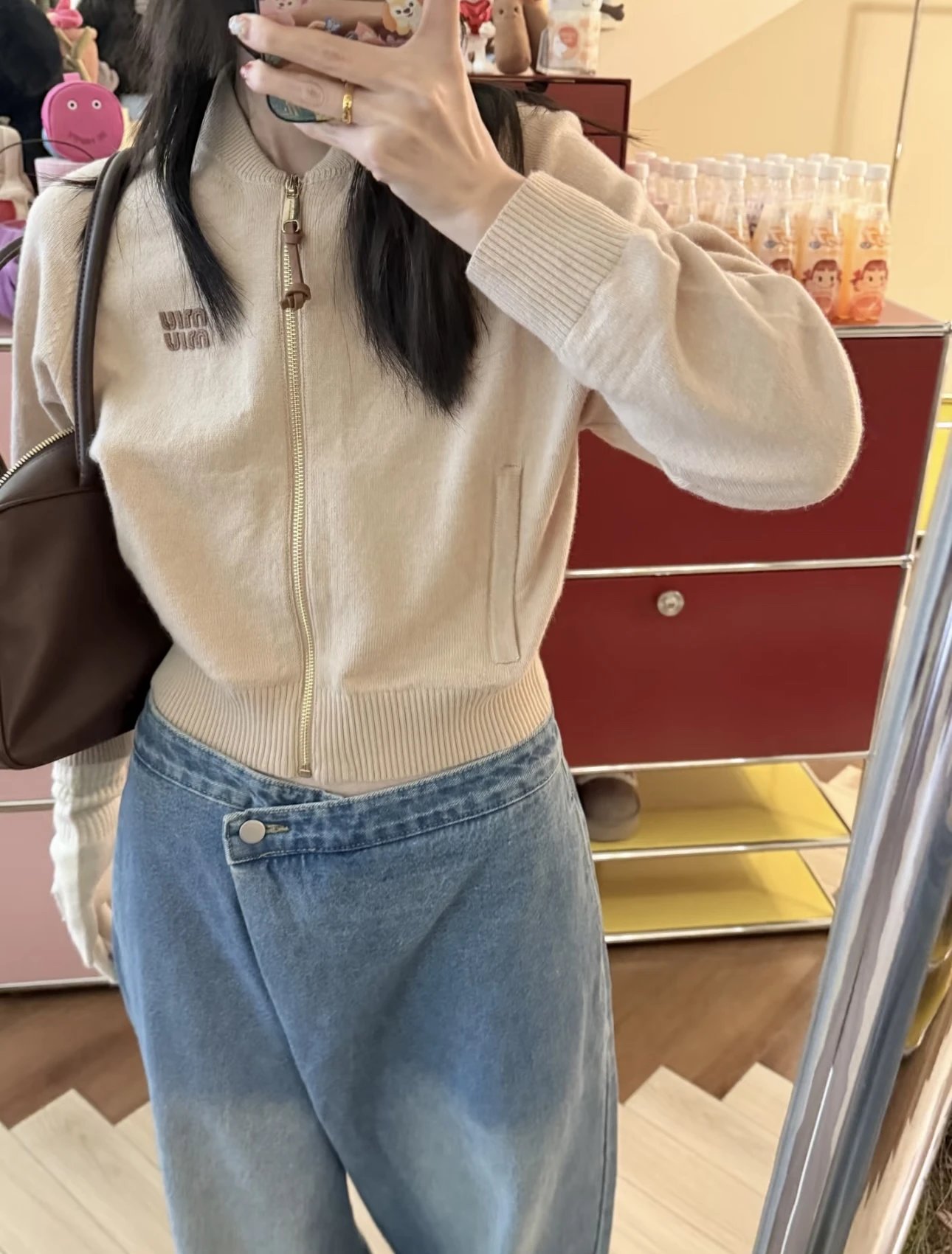 Purchasing the highest quality Miu home stand up collar zipper casual letter cashmere cardigan autumn new women’s clothing letter micro label stand up