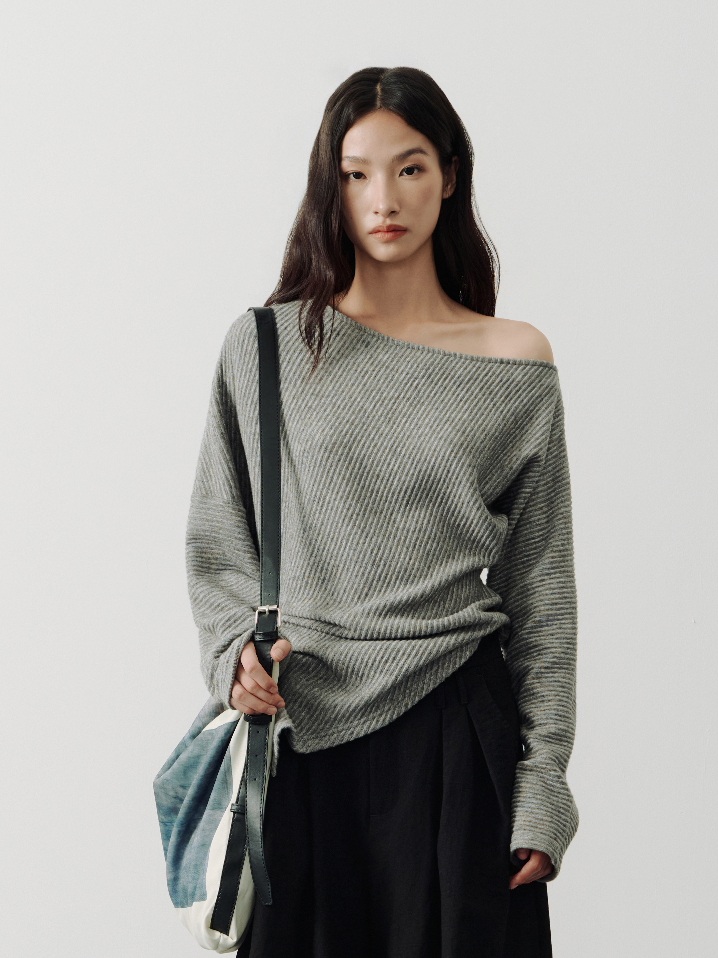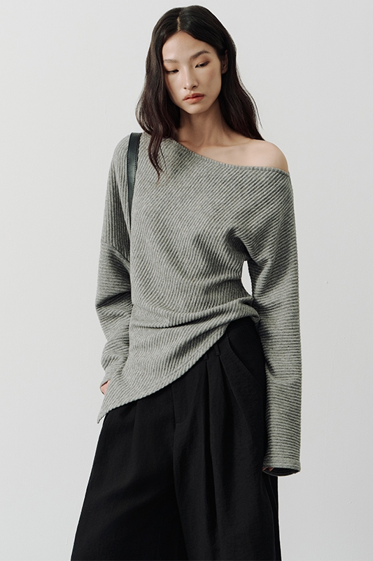 SAME FLOW Early Autumn Off Shoulder Knitted Shirt with Unequal Texture and Asymmetric Texture, High