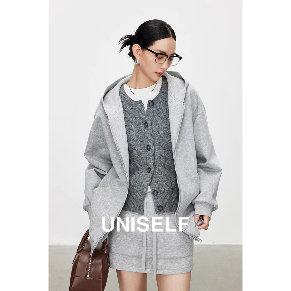 UNISELF Air Layer Hoodie Half Skirt Set for Women’s Spring 2025 New Light Luxury Sports Fashion Coat