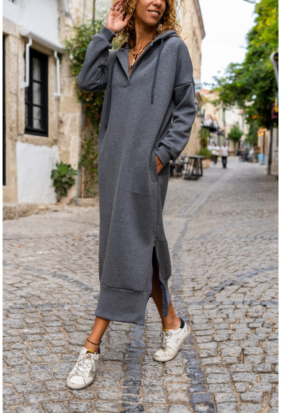 Autumn and Winter New Loose plus size Knitted Hooded Dress fleece-lined Sweater Casual Fashion dress