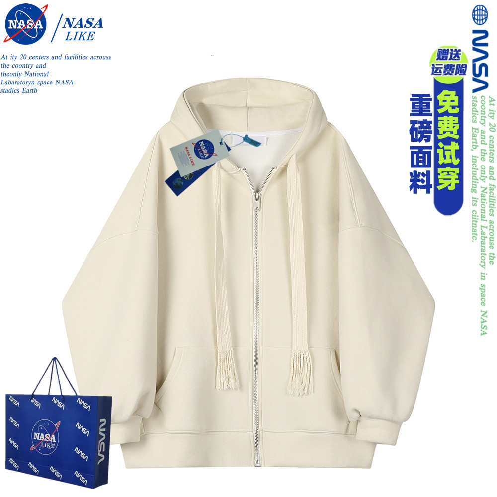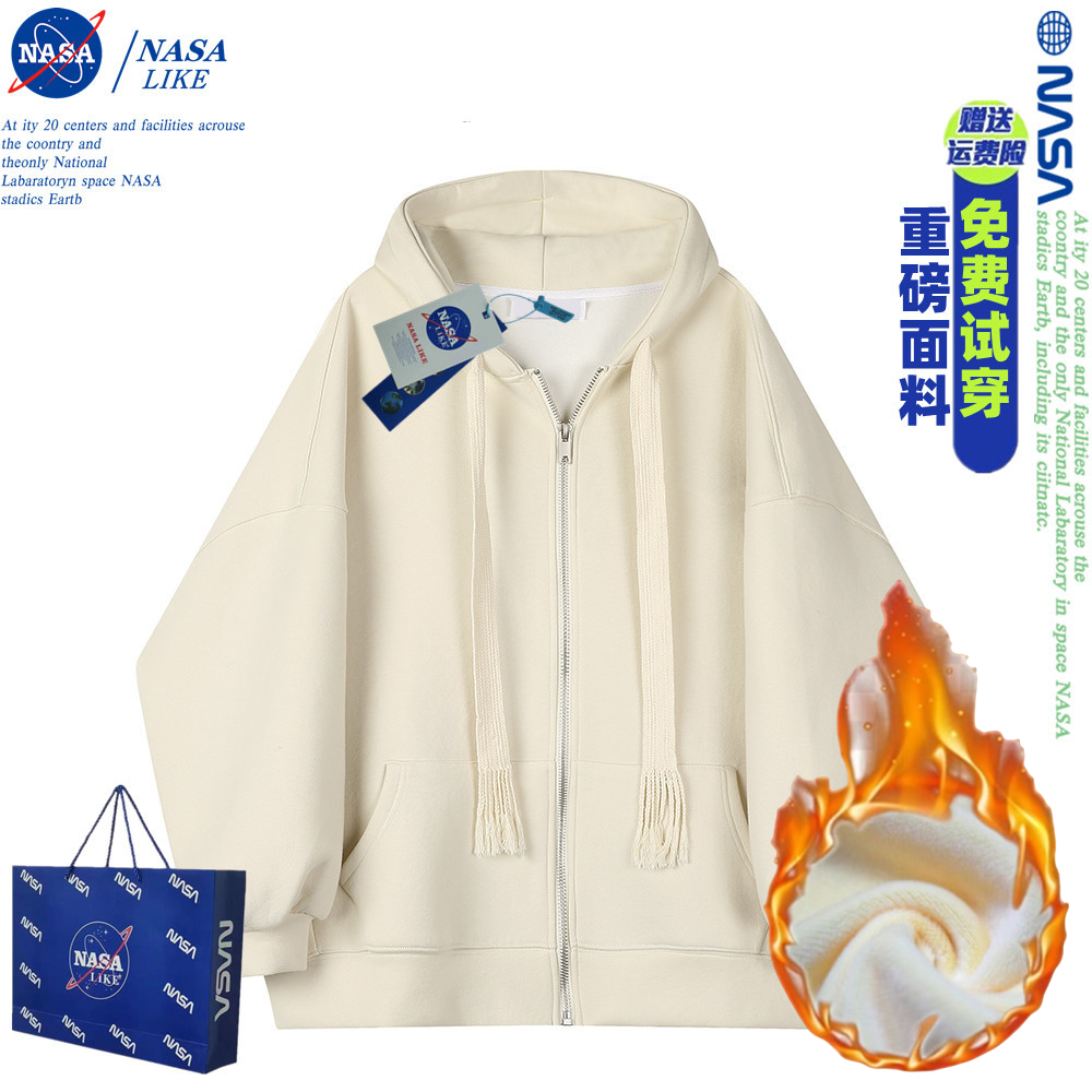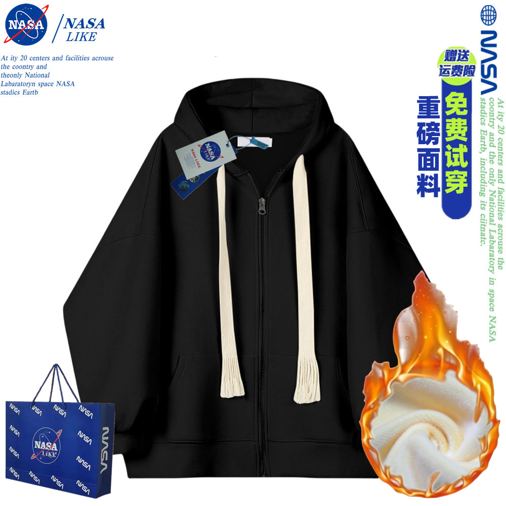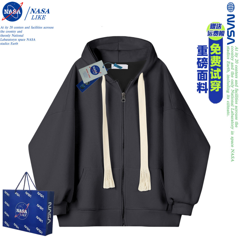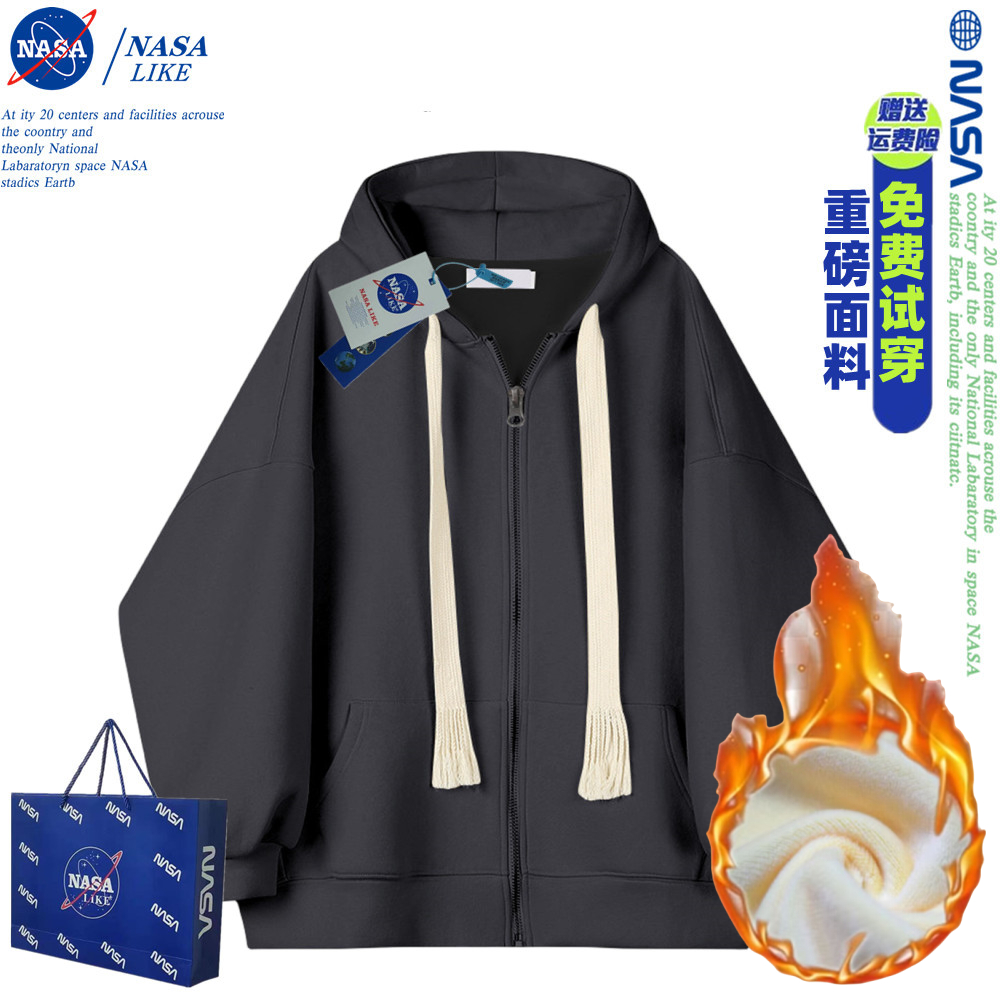 NASA burgundy solid color cardigan, zippered and refined, versatile thick cotton T loose jacket with thick velvet, men’s and women’s autumn and winter couple’s outfit