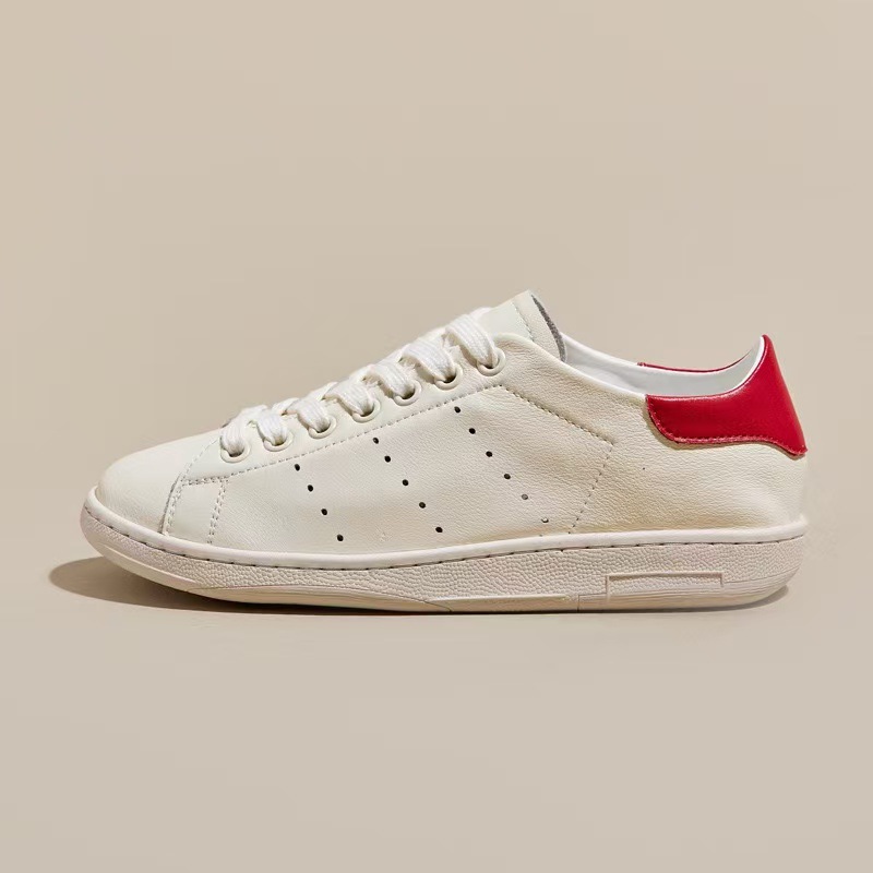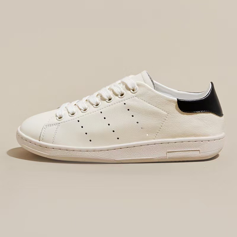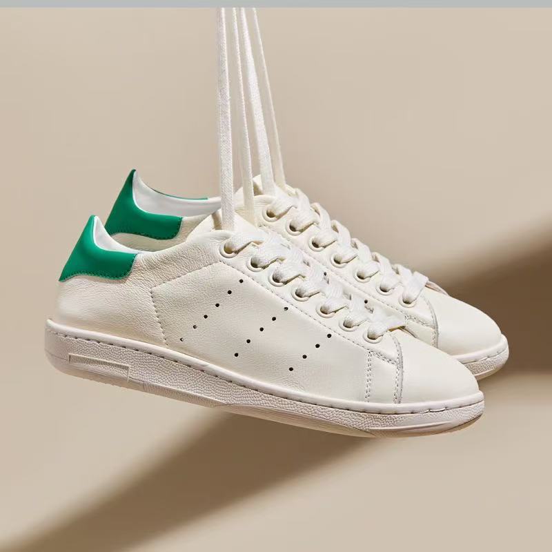 Unisex Genuine Leather White Shoes Soft Leather Soft Sole Versatile Flat Shoes Casual Casual Large Size Single Shoes Green Tail Sneakers