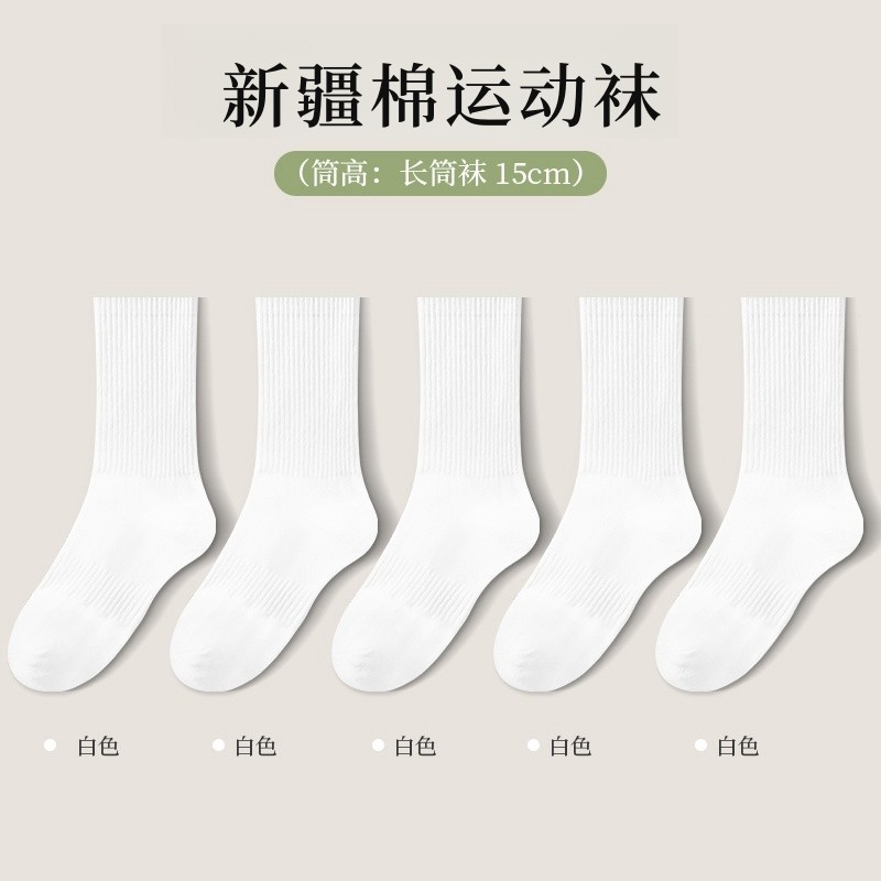 5 pairs of Xinjiang cotton socks deodorant men’s and women’s sports socks spring and summer short tube shallow mouth boat socks pure white medium stockings