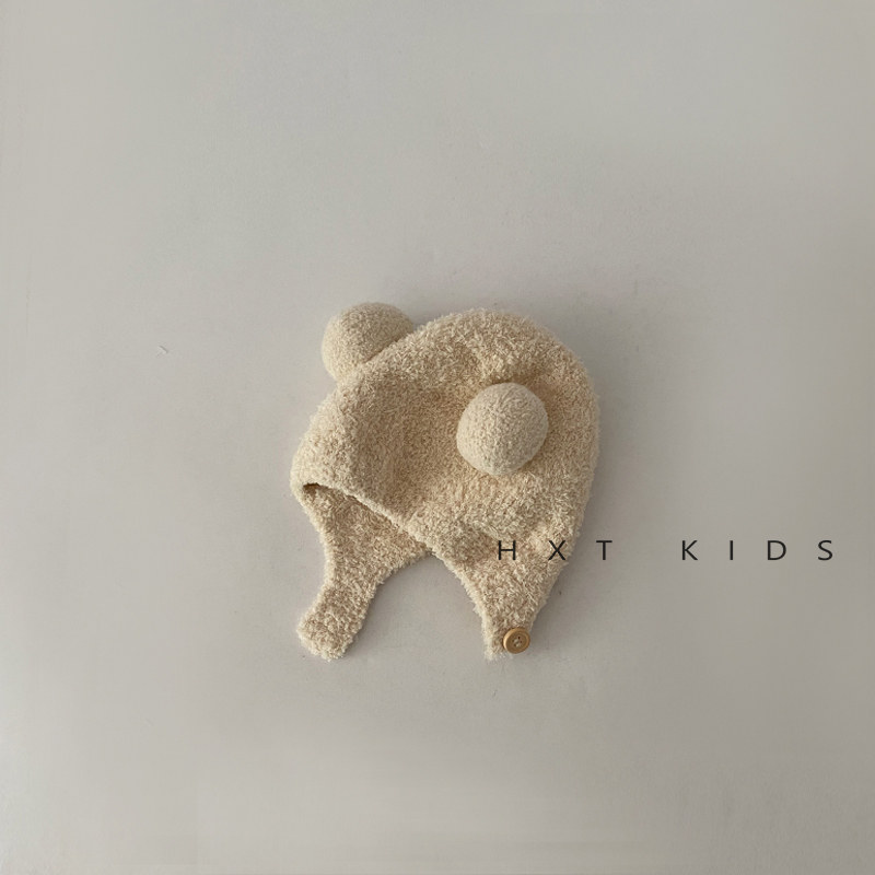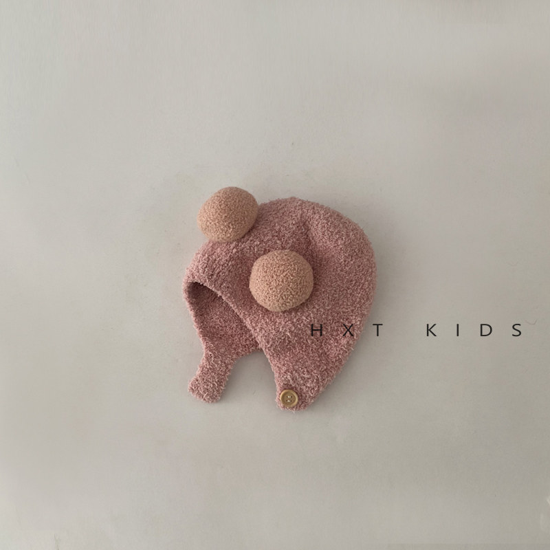 Ins Korean style baby ear protection hat for autumn and winter, plush and warm, small month old baby color blocking double ball hat for winter