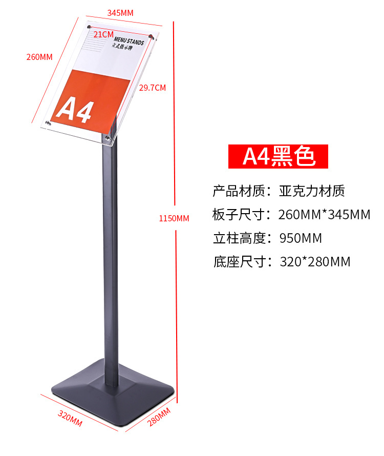 Shopping Mall A3 Floor-Standing Pop Poster Stand Acrylic Stand Display Advertising Guide Sign Kt Board Vertical Bracket
