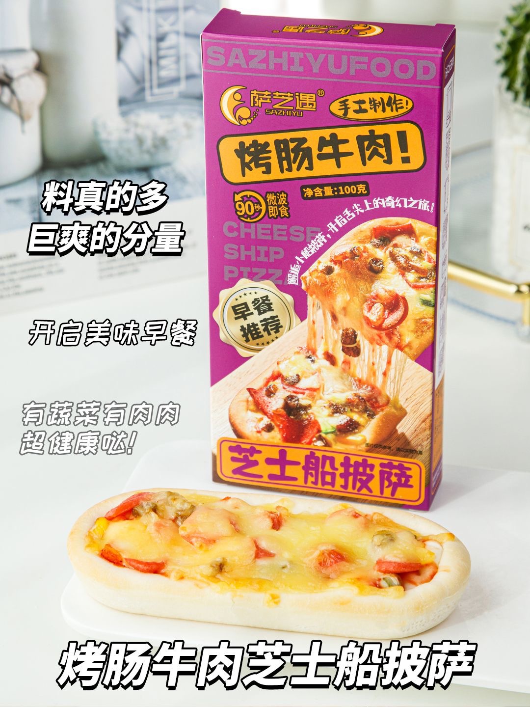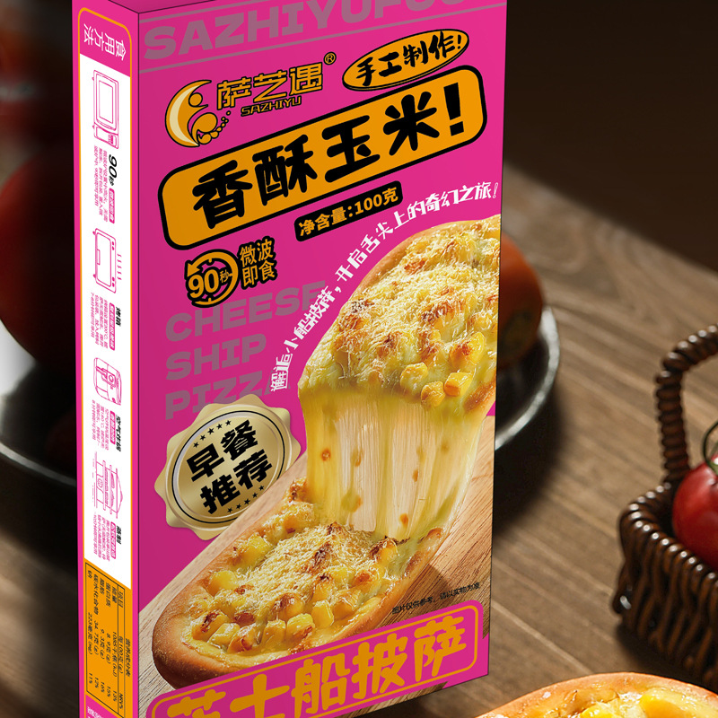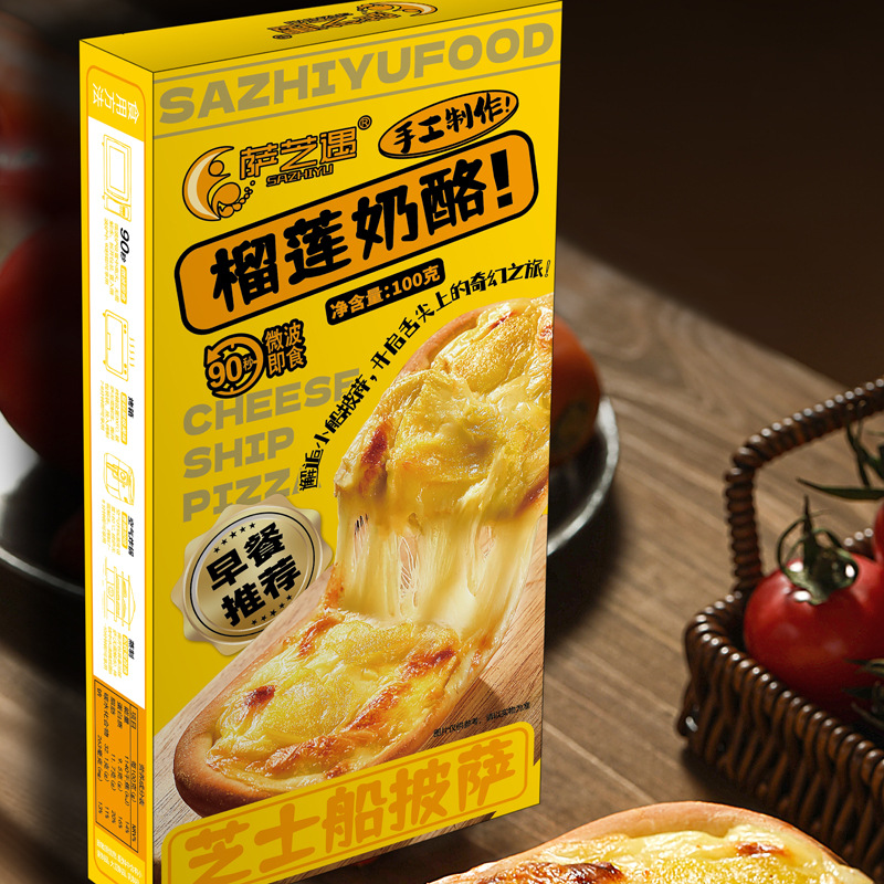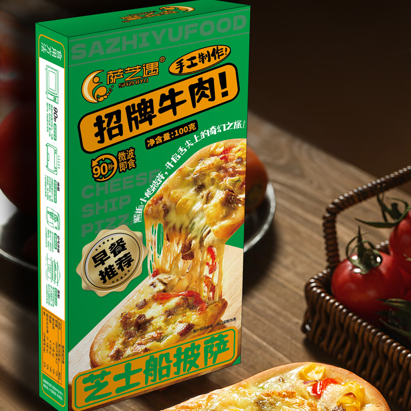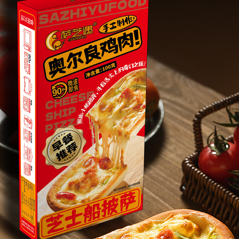 Sazhiyu Microwave Cheese Boat Pizza Set 8 Flavors Breakfast Instant Semi-Finished Food Lazy Food Ready to Eat after Heating