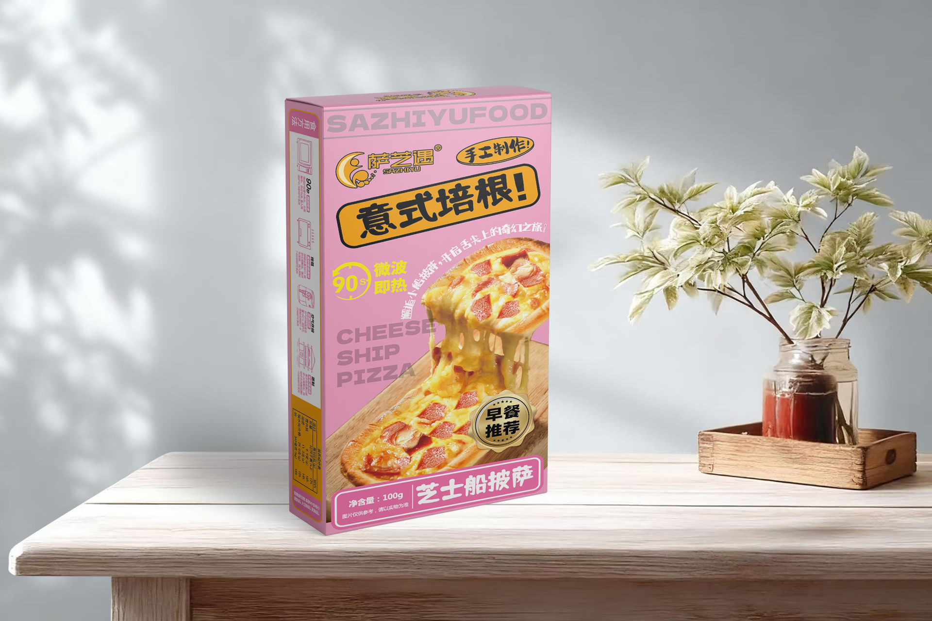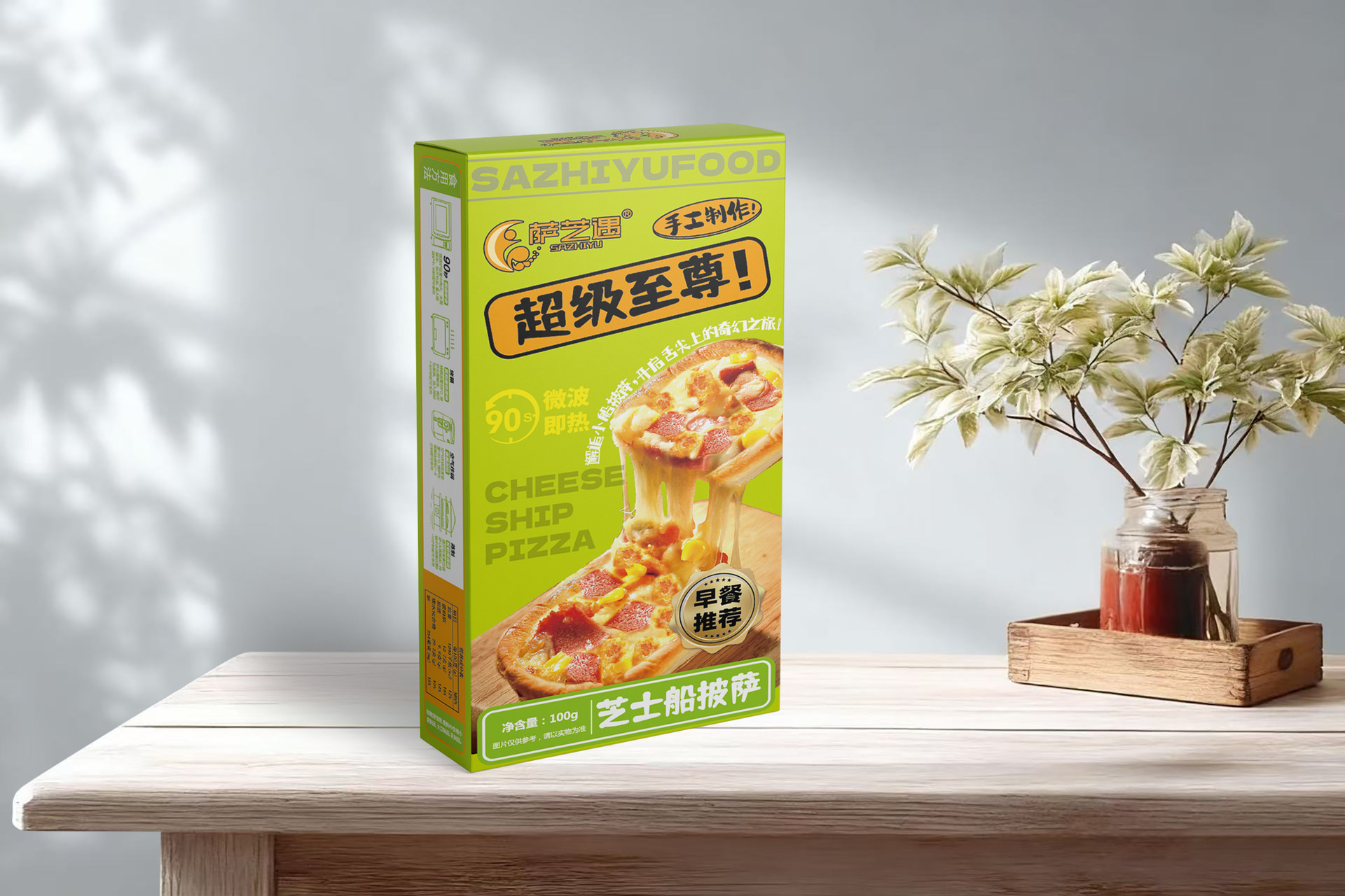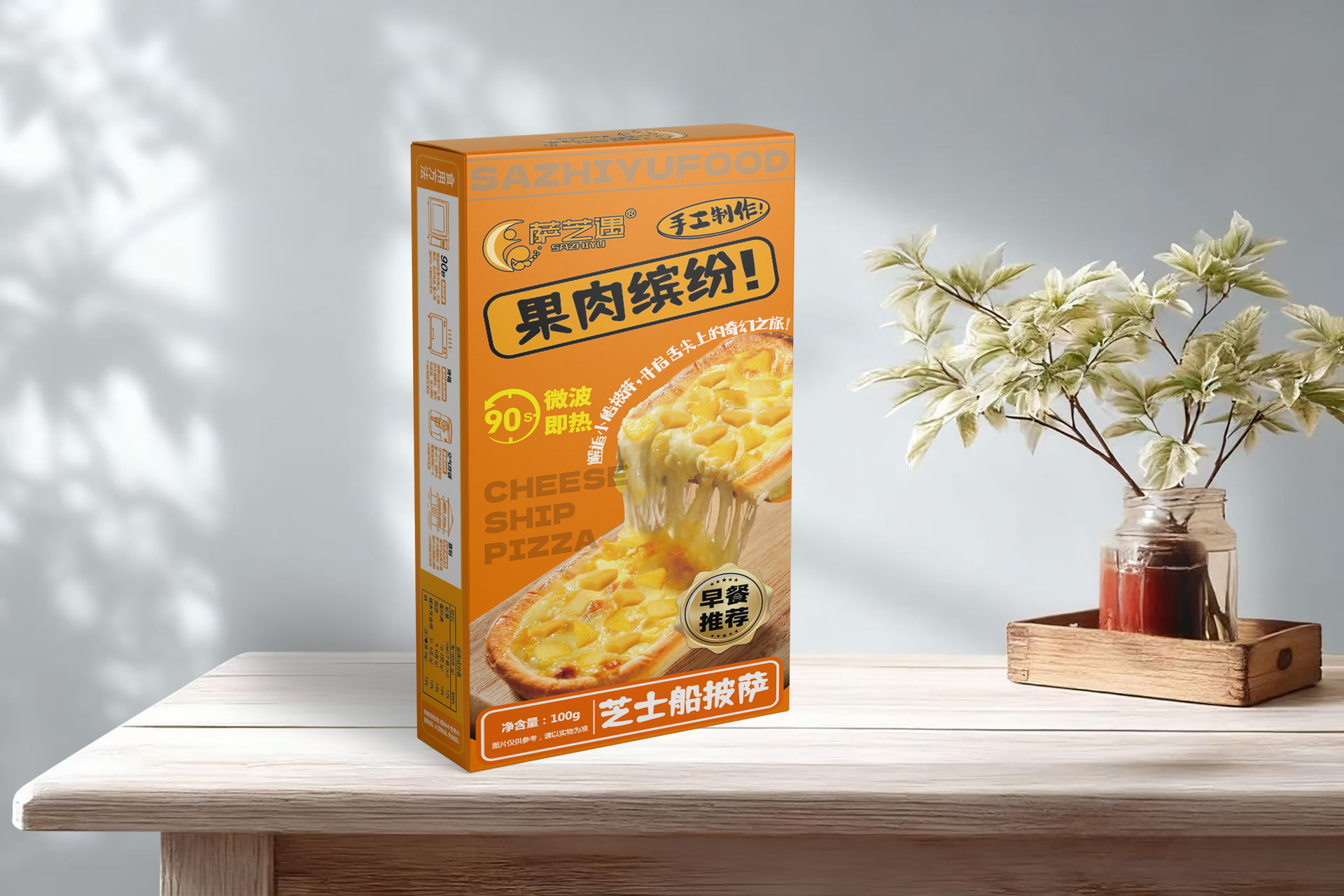 Sazhiyu Microwave Cheese Boat Pizza Set 8 Flavors Breakfast Instant Semi-Finished Food Lazy Food Ready to Eat after Heating
