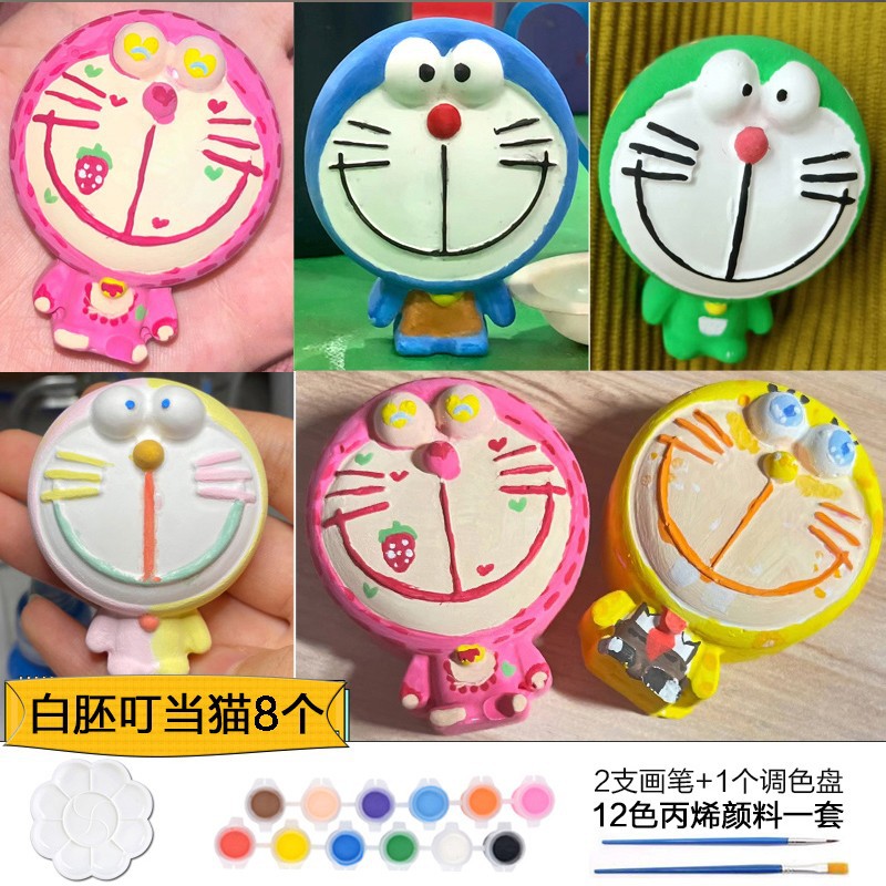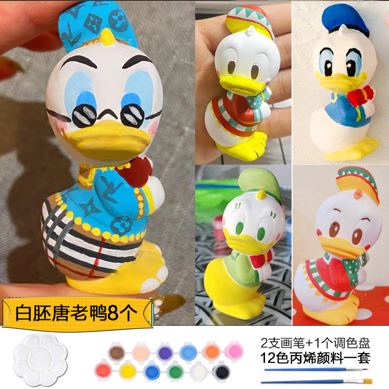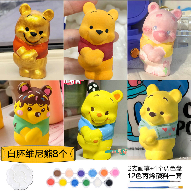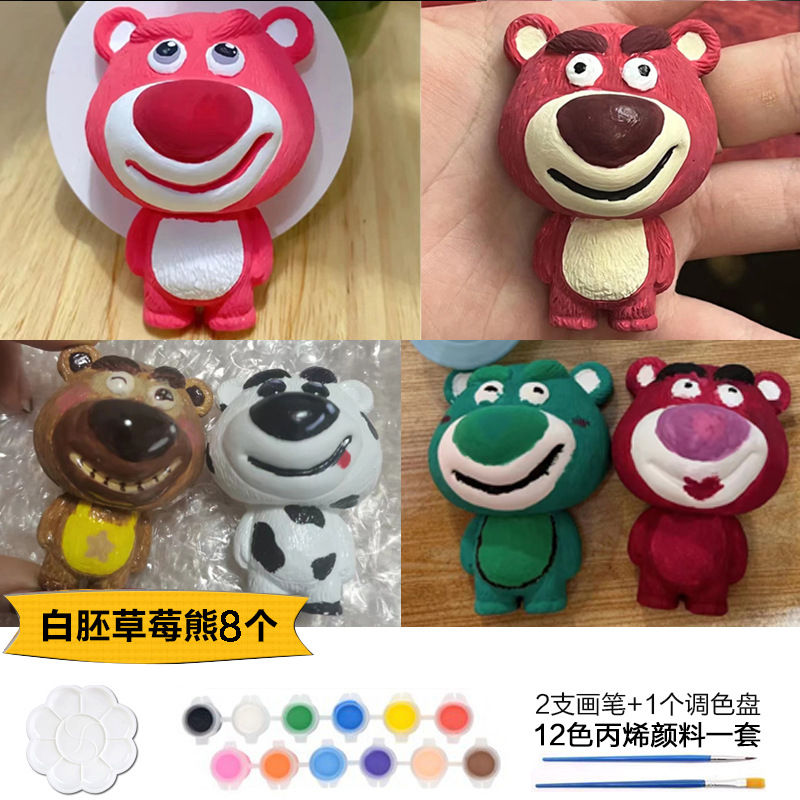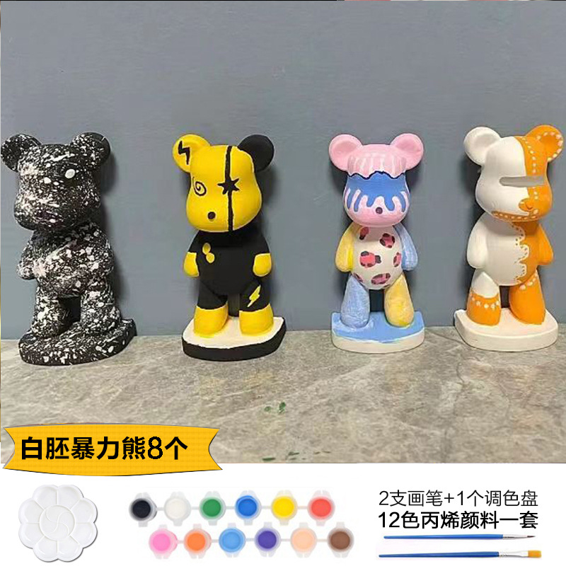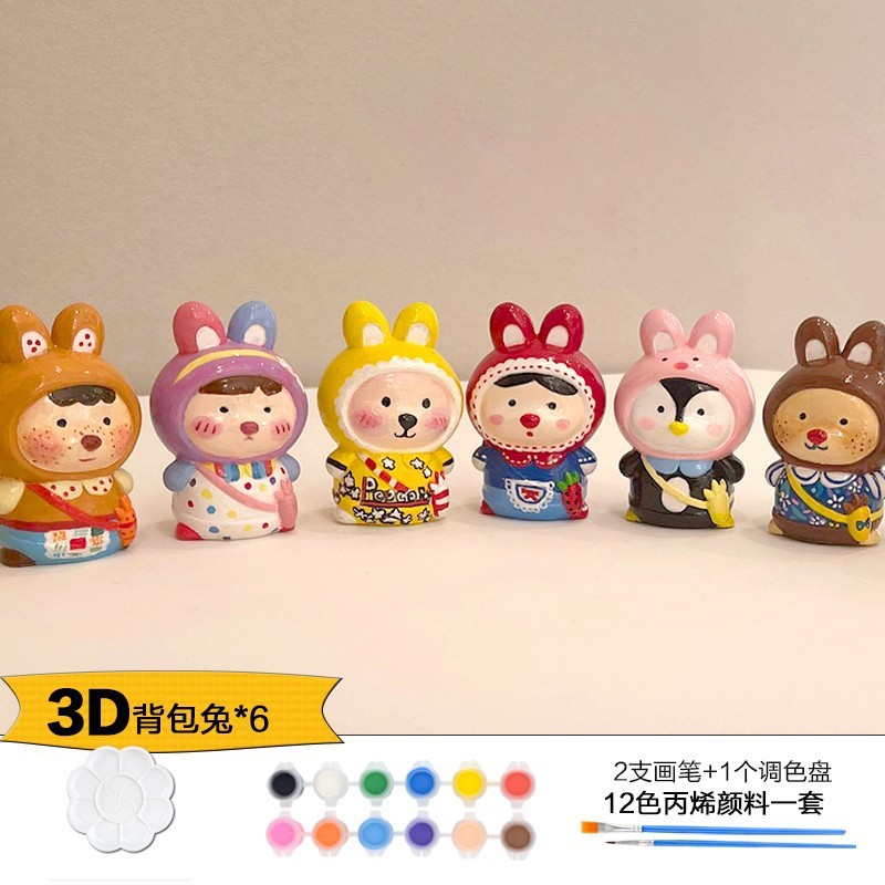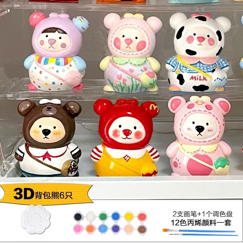 Which plaster doll painted crow painted backpack bear painted creative DIY coloring children’s painting puzzle handmade