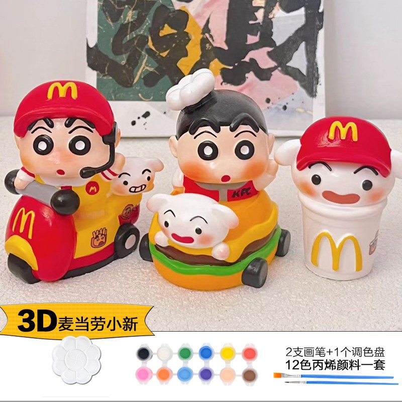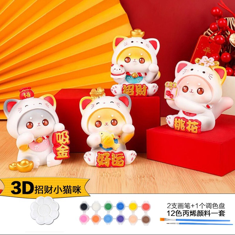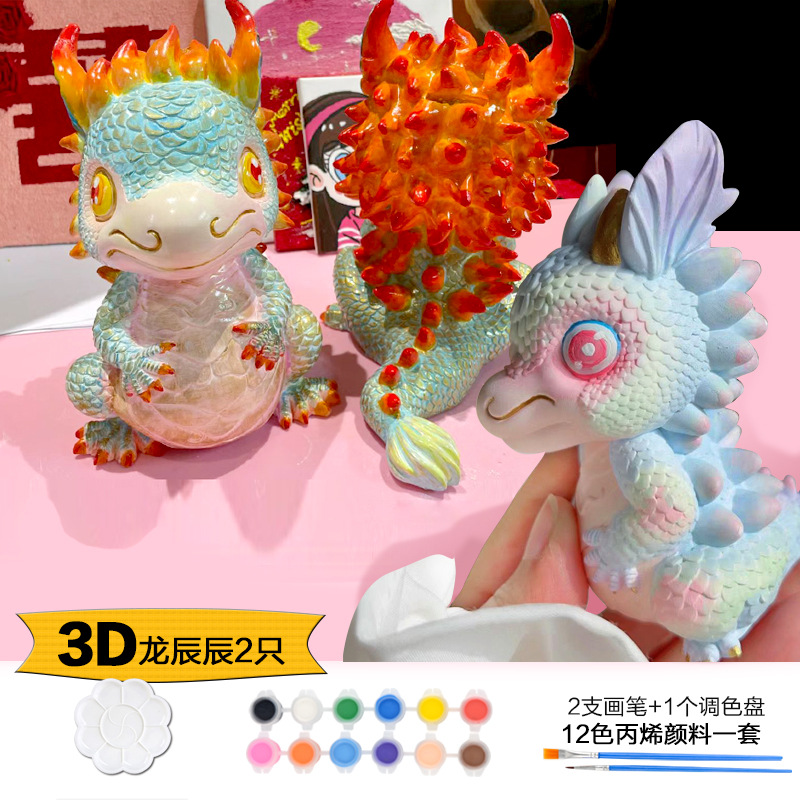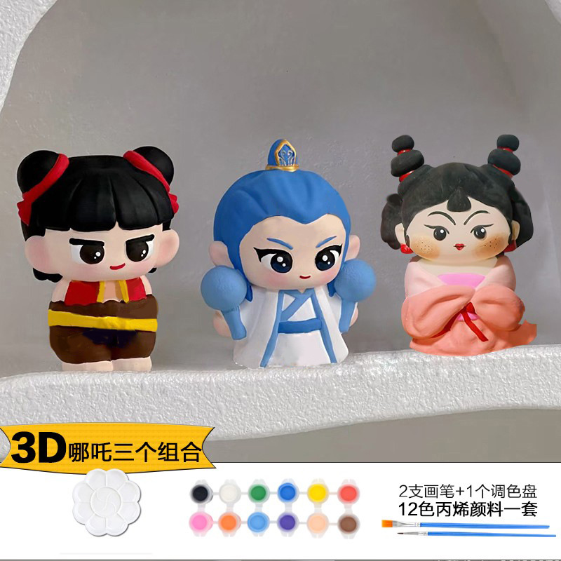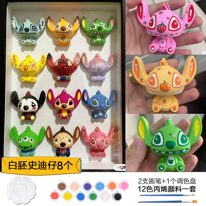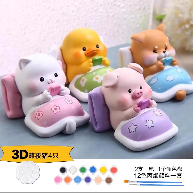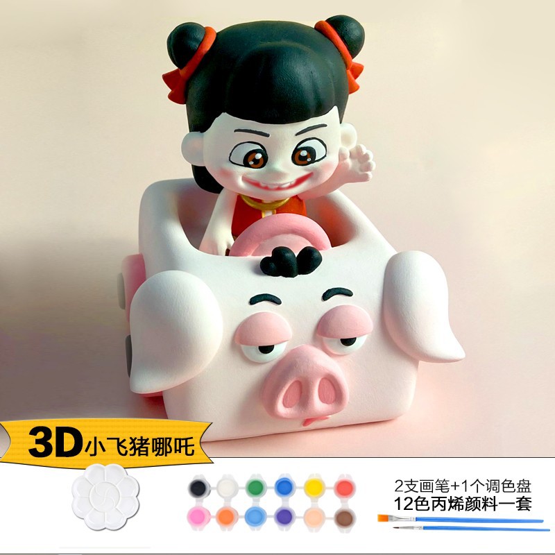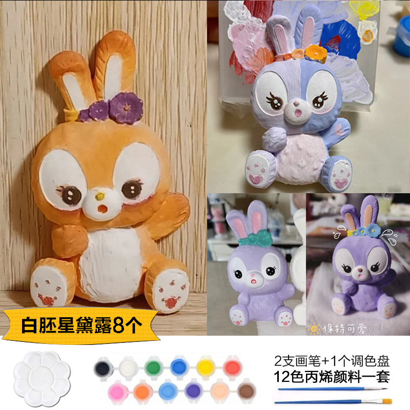 Which plaster doll painted crow painted backpack bear painted creative DIY coloring children’s painting puzzle handmade