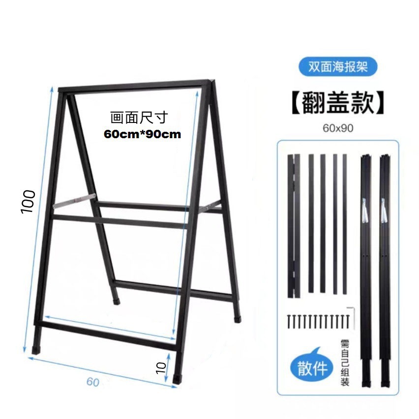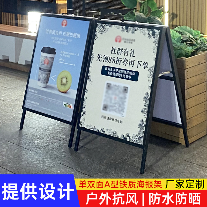 Outdoor Iron Poster Stand Floor-Standing Portable Display Stand Stand Vertical Windproof A-Type Iron Advertising Display Board