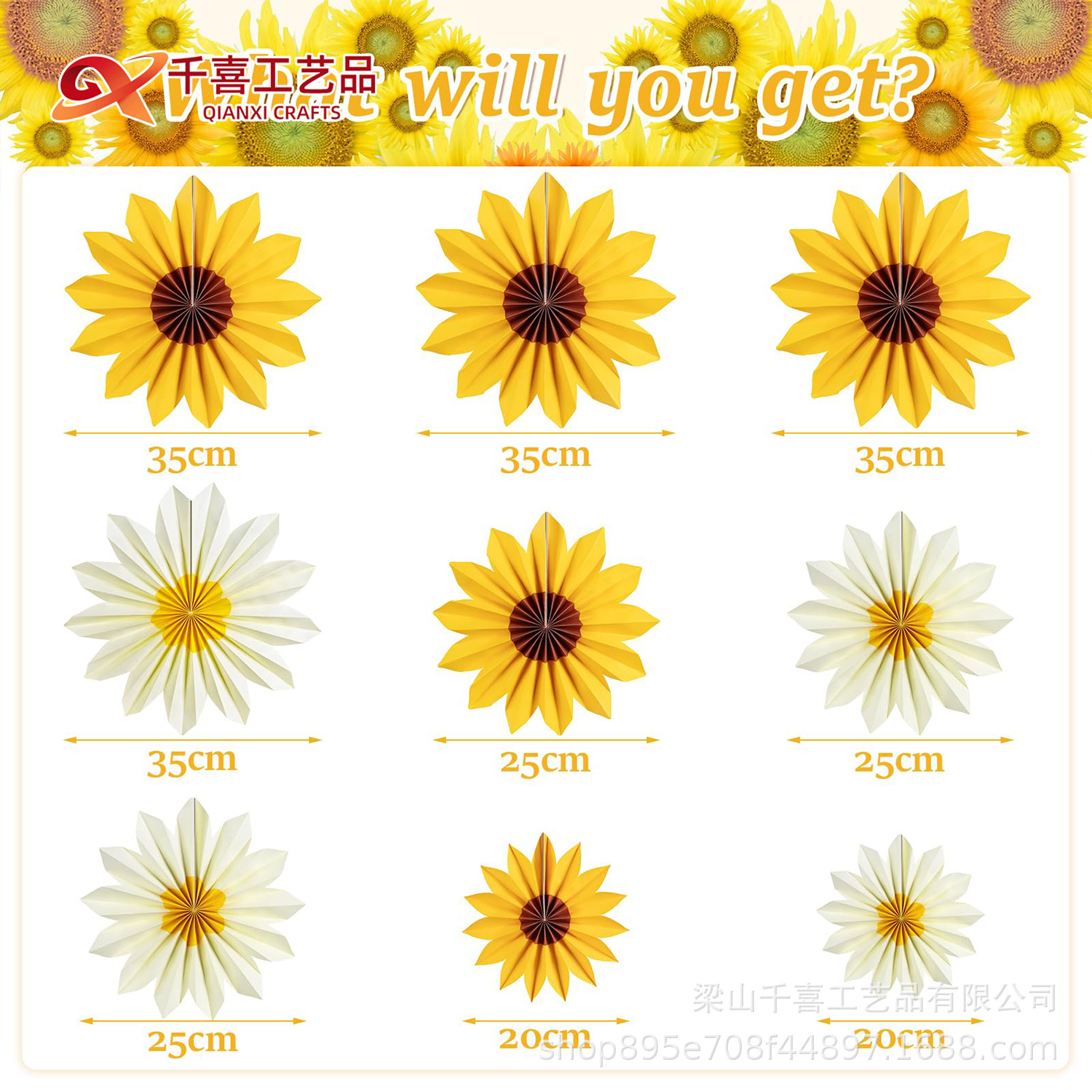 Sunflower Paper Fan Flower Party Decoration Summer Spring Blue Pink Hanging Garland Wedding Staircase Handrail Decoration