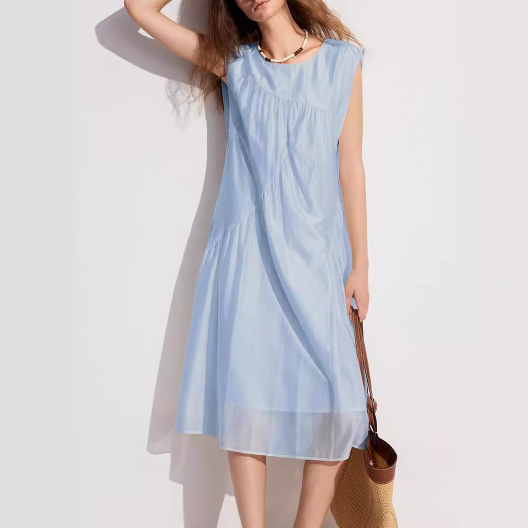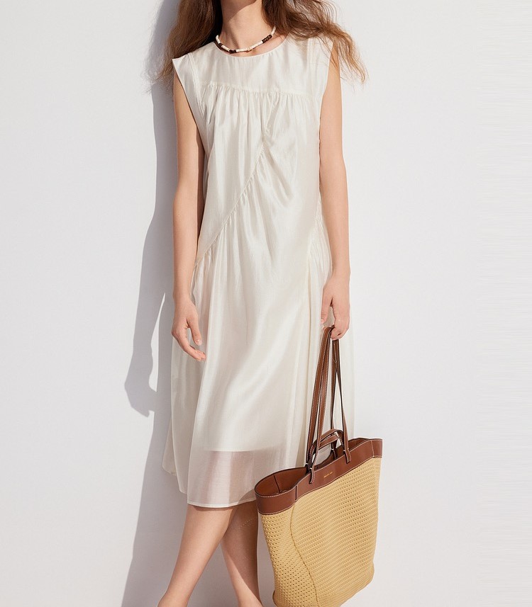 French Lyocell Tencel Dress Women’s 2025 Summer New Temperament Round Neck Off-White Sleeveless Skirt