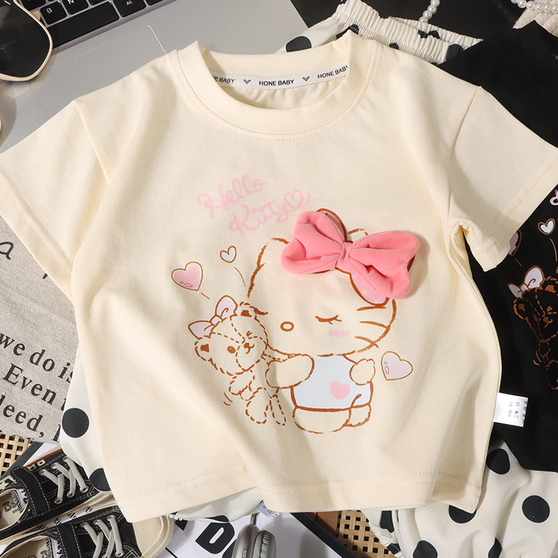 Children’s Summer Short-Sleeved Suit Girls T-Shirt Cartoon Pure Cotton Polka Dot Pants Korean Style Baby Girl Sweet Clothing Wholesale a