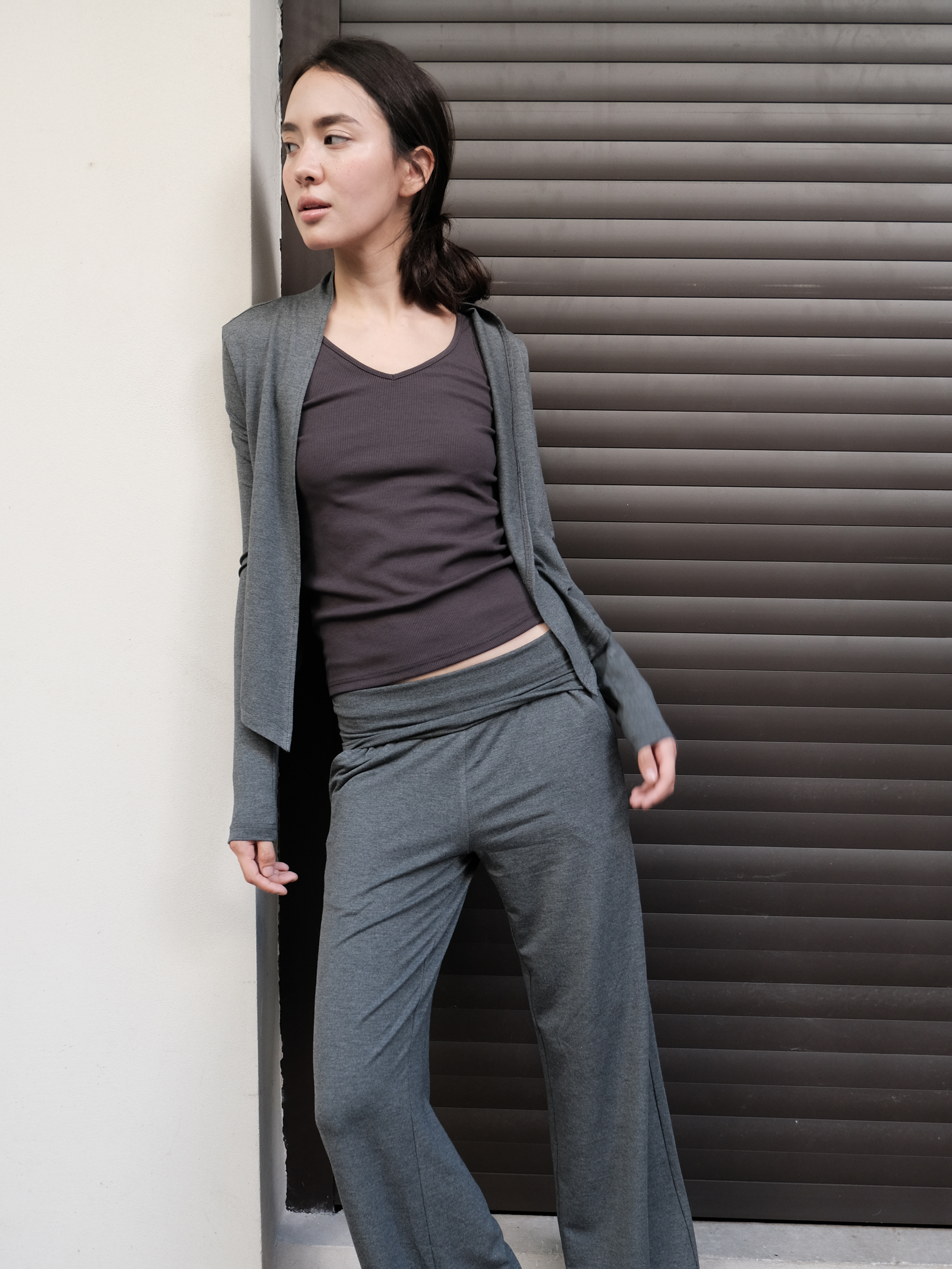 I want to play with summer and autumn bamboo fiber dark gray casual work clothes without buttons and cardigans