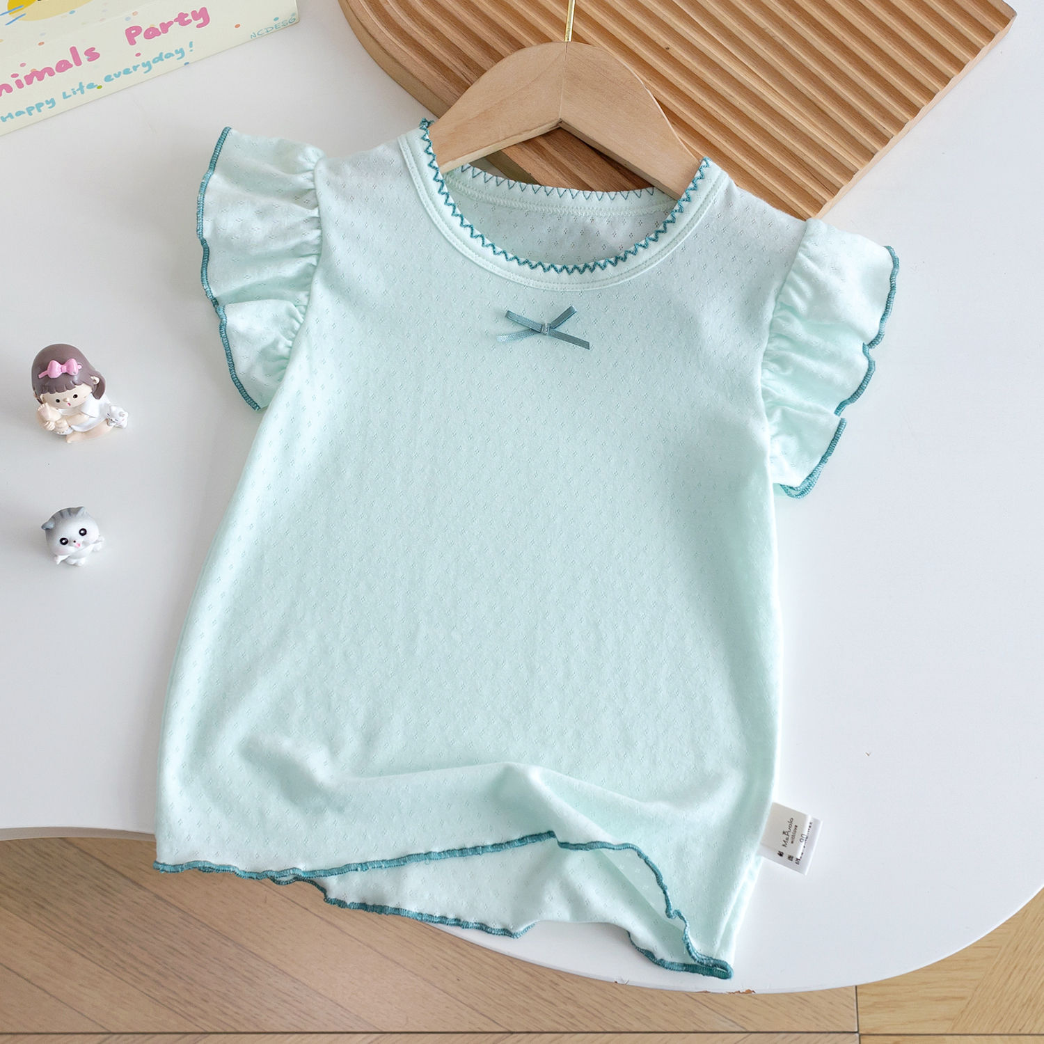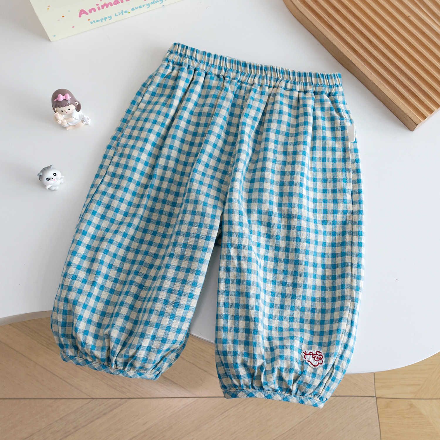 Girls’ Cute Casual Suit Summer Flying Sleeves Breathable Short Sleeves + Nine-Point Plaid Anti-Mosquito Pants Baby Girl Summer Clothes