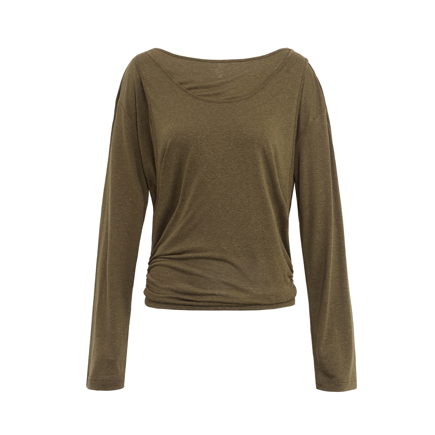 New limited time 95% off SMIIILE fake two-piece Tencel linen sloping shoulder top women’s stacked long sleeved t-shirt